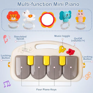 - Playtime: The interactive tray keeps babies entertained with stimulating activities and toys.